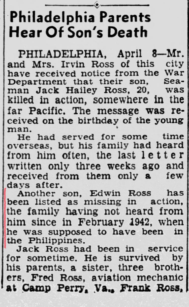 He was held at the Cabanatuan prisoner-of-war camp, where conditions were brutal. More than 2,500 prisoners died there during the war. According to historical records, Ross died on July 27, 1942. He was buried in a common grave at the camp cemetery.