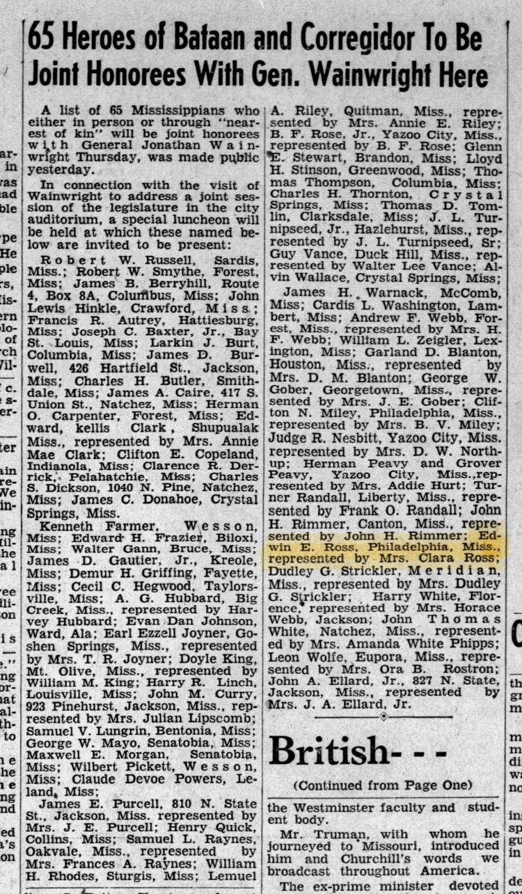 The Defense POW/MIA Accounting Agency (DPAA) announced that U.S. Army Tech5 Edwin E. Ross, 24, of Philadelphia, Mississippi, has been officially accounted for as of July 18, 2025. Ross was captured and later died as a prisoner of war in 1942.